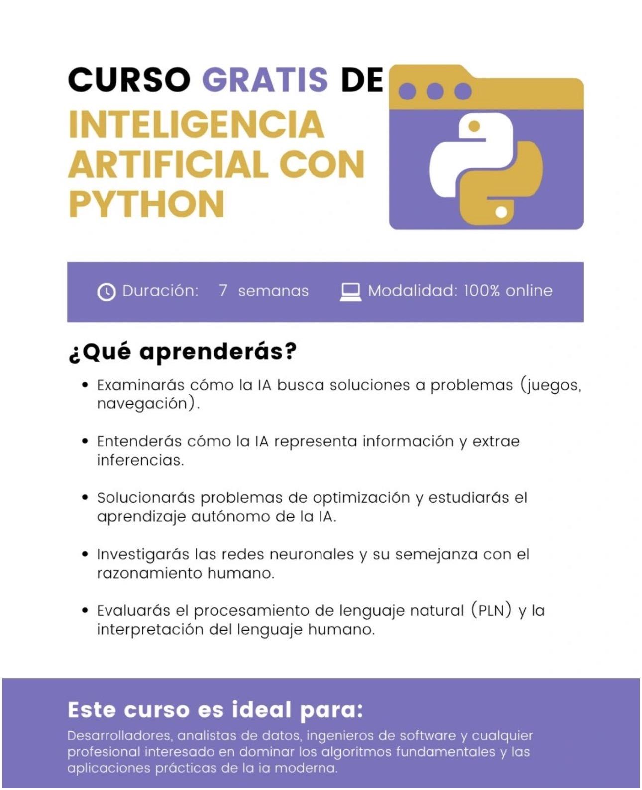 Es una oportunidad para CERTIFICARTE en IA con Python y destacarte profesionalmente.